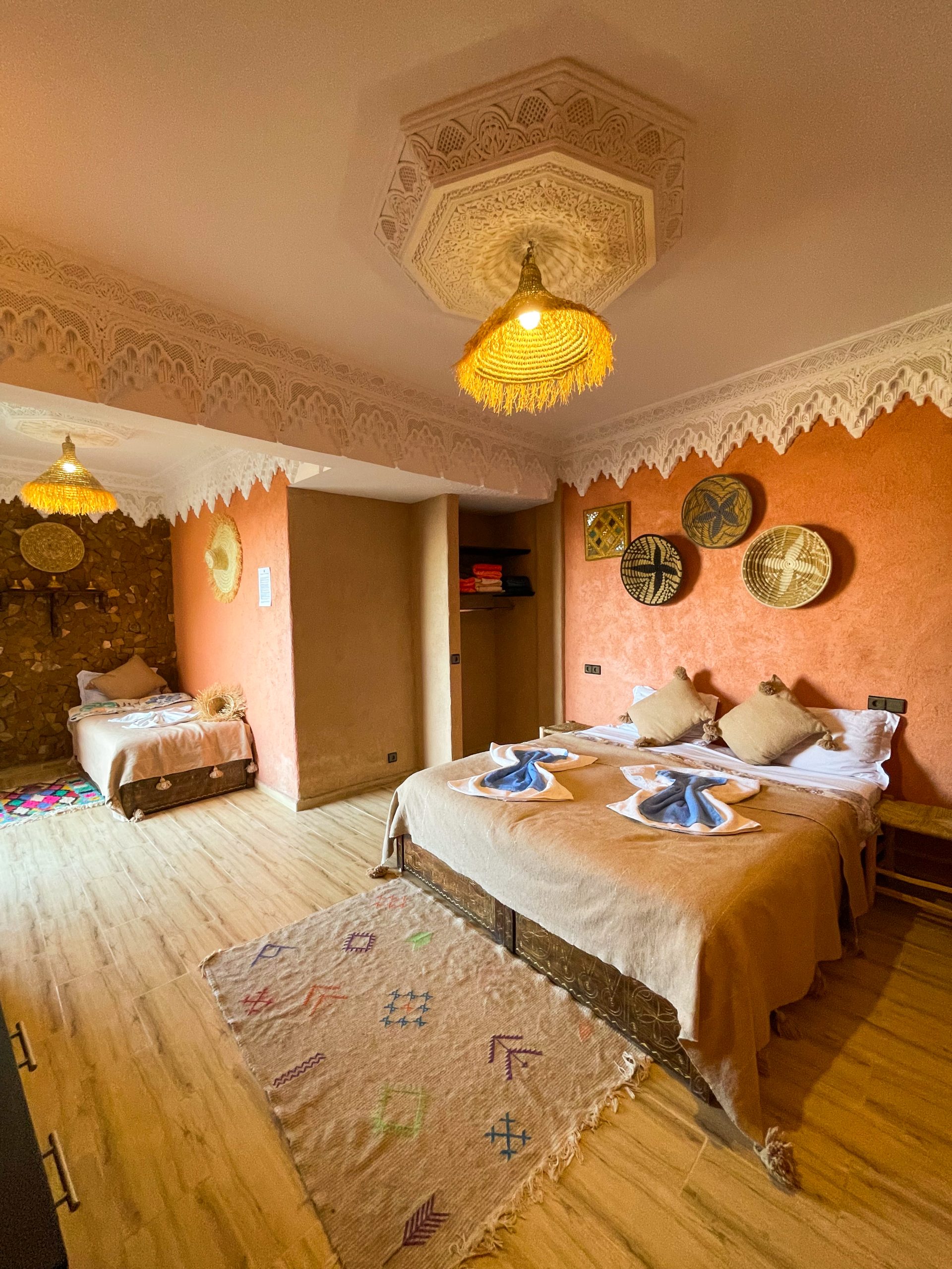 Spacious family-friendly suite with two bedrooms and a living area, perfect for a family vacation.